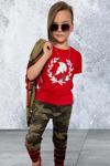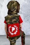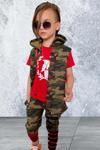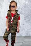 Erkek Çocuk Kamuflaj Desenli Yelek ve Dijital Baskılı Kırmızı Eşofman Takım