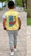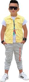 Riccotarz Erkek Çocuk Kaplan Detaylı T-shirt Sırt Baskılı Kolsuz Sarı Jean Ceket Kargo Cepli Alt Üst Takım