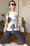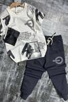 Erkek Çocuk Kargo Cepli ve Design Baskılı Siyah Eşofman Takım