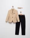 Erkek Çocuk Keten Spor Blazer Ceket, Pantolon ve Papyon Erkek Çocuk Takım Elbisesi -
