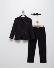 Erkek Çocuk Keten Spor Blazer Ceket, Pantolon ve Papyon Erkek Çocuk Takım Elbisesi - Siyah 4414