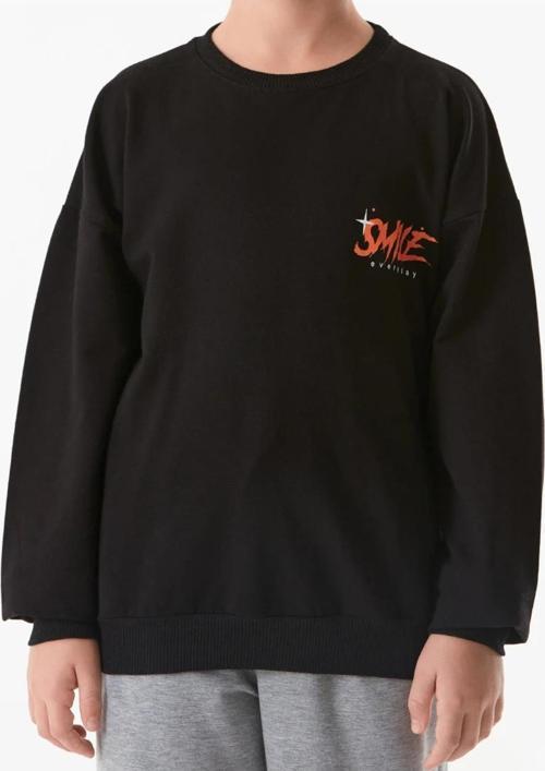 İrem Çocuk Giyim Erkek Çocuk /Kız Çocuk Önü Arkası Smile Yazılı Gezegen Resim Desenli Siyah Renk Sweatshirt