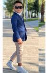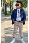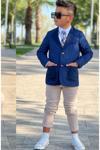 Erkek Çocuk Klasik Gömlek Kravatlı Kapitone Mavi Mont Slim Pantolon Kesim Pantolon Alt Üst Takım