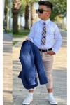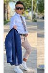 Riccotarz Erkek Çocuk Klasik Gömlek Kravatlı Kapitone Mavi Mont Slim Pantolon Kesim Pantolon Alt Üst Takım
