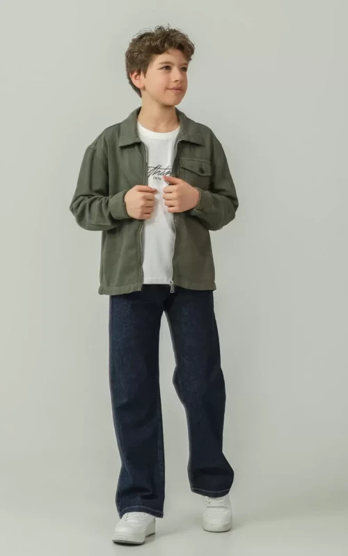 Alg Life ERKEK ÇOCUK KOT PANTOLON + KETEN CEKET + TİŞÖRT 3'LÜ TAKIM KOMBİN (Bir Beden Büyük Önerilir)