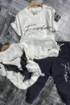 Toplam iki parça. t-shirt ve Alt eşofman.