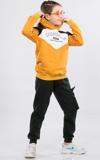 Go Veform Erkek Çocuk Reglan Kol Kapüşonlu Üç İp Kışlık Eşofman Takımı Hardal MRN51207