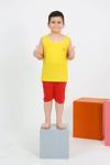 - Üst Parça: Sıfır kollu, sarı renkte atlet
