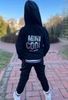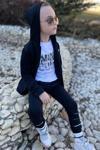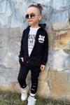 Erkek Çocuk Sırt Baskılı Minicool Yazı ve Paçaları Yırtmaç Detaylı Siyah Eşofman Takım