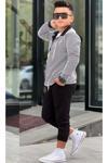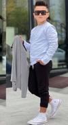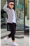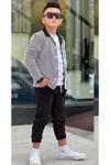 Erkek Çocuk Su Yolu Çizgili Ceket Penye Kazak 2 İplik Pantolon Siyah Alt Üst Takım