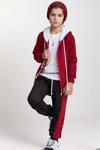 Erkek Çocuk Üzeri Todays Mod Yazı Ve Şerit Detaylı Kapüşonlu Bordo Eşofman Takım