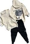 Erkek Çocuk Üzerinde Basketbol Topu Ve Stay Unıted Yazı Baskılı 3 İplik Siyah Eşofman Takım