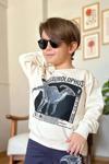 Ürün bilgisi: Üzeri Parasaurolophus digital baskılı ve yazı baskılı penye kazak.