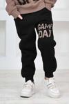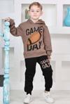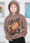 Erkek Çocuk Üzerinde Top ve Game Day Yazı Baskılı Sweatshirt 3 İplik Kahverengi Eşofman Takım