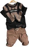 Erkek Çocuk W Harf Why Not Baskılı T-Shirt Kahverengi Şortlu Takım