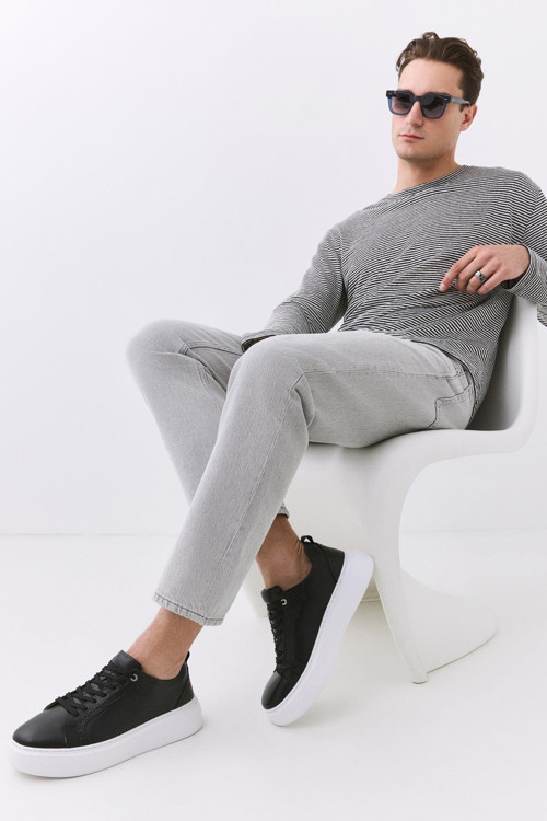 Erkek Deri Siyah Hafif Tabanlı Spor Ayakkabı