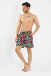 Plajda ve havuzda şıklığından ödün vermek istemeyen erkekler için ideal bir seçim olan Çamaşır Kenti Erkek Desenli Fermuar Cepli Deniz Şortu Siyah, tarzınızı yansıtmanızı sağlar.