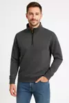Genel Tedarik Erkek Dik Yaka Sweatshirt Dik Yaka Yarım Fermuarlı 3 İplik Şardonlu Pamuk Kumaş - Antrasit