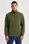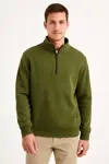 Genel Tedarik Erkek Dik Yaka Sweatshirt Dik Yaka Yarım Fermuarlı 3 İplik Şardonlu Pamuk Kumaş - Haki