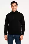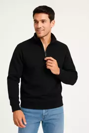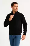 Genel Tedarik Erkek Dik Yaka Sweatshirt Dik Yaka Yarım Fermuarlı 3 İplik Şardonlu Pamuk Kumaş - Siyah