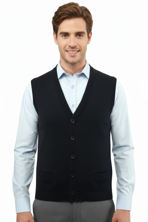-Erkek Düğmeli Yelek Cepli Çelik Örgü Klasik Kalıp 5200L.