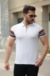 Erkek Fermuar Yakalı Kolları Desenli Kısa Kollu Tişört
