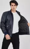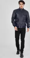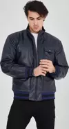 Erkek Fermuarlı İçten Elyaf Ve Astarlı Suni Deri Ceket - Lacivert
