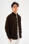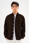 Souris Erkek Fitilli Kadife Gömlek Kahverengi Rahat Kesim Tek cepli