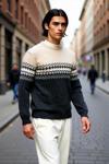 PayBuy Erkek Fitted Etnik Desenli Bisiklet Yaka Triko Kazak Kış Günleri İçin İdeal Şık ve Konforlu Bir
