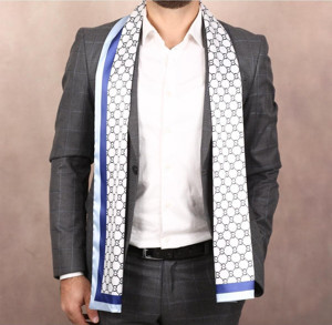 Erkek Özel Desenli Atkılar Mavi Beyaz Desenli