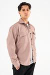 Erkek Gömlek Ceket Vizon Regular Fit Çıtçıtlı