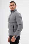 Erkek Gri İçi Çıkarılabilir Kapüşonlu Su Ve Rüzgar Geçirmez Şişme Kışlık Mont.