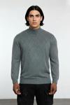 Ürün Özellikleri: Regular kalıp, pamuklu materyal, baklava desen, dik yaka, standart kol, triko kumaş, gri renk, baskısız tasarım, uzun kol, ince kalınlık.