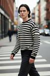 Ersefa Erkek Günlük Oversize Bisiklet Yaka Çizgili Triko Kazak Standart Uzun Kol Fitilli Dokuma Kaliteli