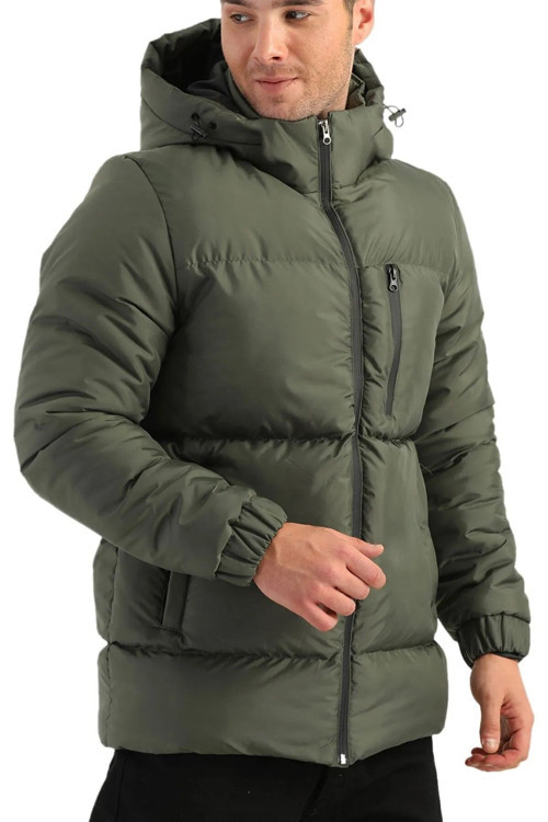 Erkek Haki İçi Çıkarılabilir Kapüşonlu Su Ve Rüzgar Geçirmez Şişme Kışlık Spor Mont.