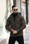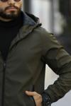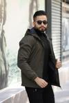 Erkek Haki İçi Astarlı Suya Dayanıklı Kapüşonlu Cepli Mont