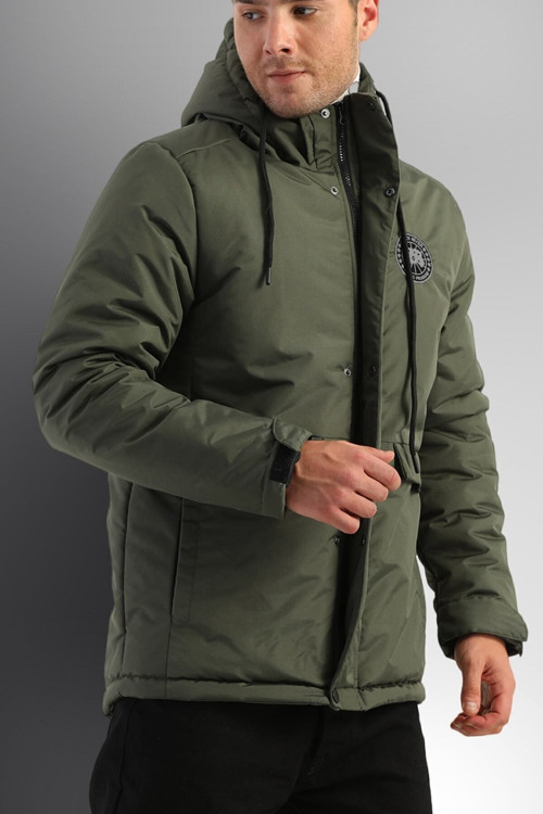 Erkek Haki Polarlı Su Ve Rüzgar Geçirmez Kapüşonlu Kışlık Mont & Kaban & Parka.