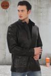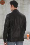 Ersefa Erkek Hakiki Kuzu Derisi Ceket Siyah Şık ve Klasik Deri Mont Düğmeli ve Fermuarlı Modern Tasarım