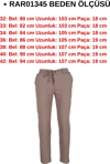 40 Beden Bel: 90 cm Uzunluk: 107 cm Paça: 19 cm