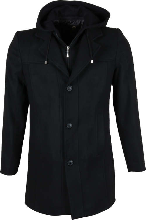 Erkek Normal Kesim Kışlık Kapşonlu Siyah Kaşe Kaban RAR01268