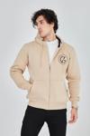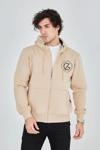 Mzp Kartan Erkek Kapüşonlu Baskılı Fermuarlı Hırka - Bej
