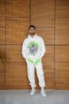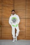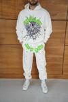 Mzp Kartan Erkek Kapüşonlu Eşofman Takım Örümcek Ağı ve Neon Yeşil Baskılı Kanguru cepli Oversize Rahat Kalıp,