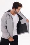 Erkek Bej Içi Astarlı Kapüşonlu Cepli Yağmurluk - Rüzgarlık Ceket | L - Image 1