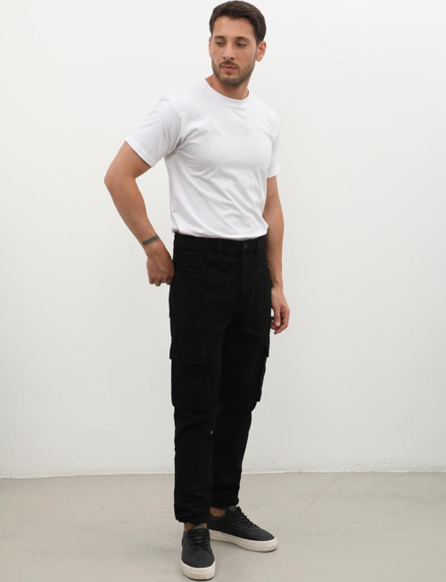 Modern kesimli, rahat ve şık görünüm sunan kargo cepli jean.