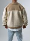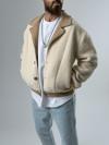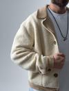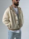 Erkek Kaşe Detaylı Ekru Peluş Hırka COC2585