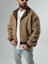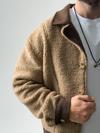 Erkek Kaşe Detaylı Kahverengi Peluş Hırka COC2578