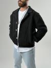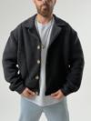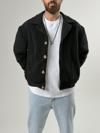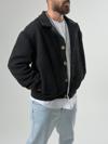 Erkek Kaşe Detaylı Siyah Peluş Hırka COC2586