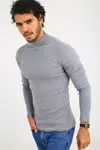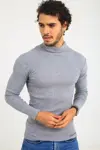 Erkek Kaşkorse Boğazlı Full Likralı Fitilli Body Kazak - Gri
