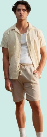 PayBuy Erkek Keten Görünümlü Pamuk Şort Rahat Kalıp Günlük Kullanım Hafta Sonu Yaz Aylarının Vazgeçilmezi