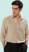 Bu klasik çizgili gömlek, şıklığı ve rahatlığı bir araya getiren mükemmel bir seçenek! %89 pamuk ve %11 polyester karışımı ile üretilen kumaşı, nefes alabilir ve yumuşaktır; gün boyu konfor sağlar. Gömlek yakası, standart kolları ve regular fit kalıbıyla hem iş hem de günlük hayatta şık görünmenizi sağlar. Kahverengi ve krem tonlarının şık birleşiminden oluşan çizgili deseni, her tarza uyum sağlar.